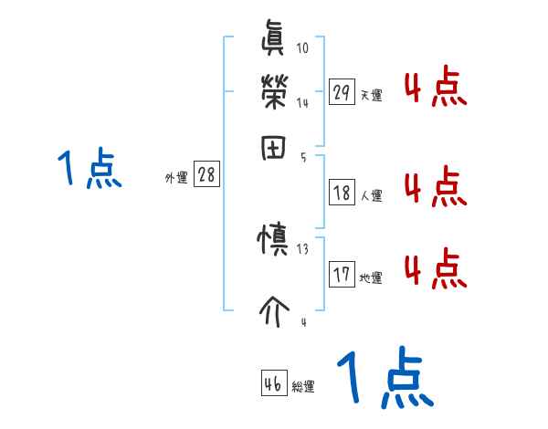 天運![]() | 眞榮田慎介さんの天運は29画の4つ星!完全主義で才能がある。厳格な心の持ち主。 家系が持つ宿命的な運勢を表します。祖先から受け継いだ苗字ですので自分の力が及びません。家柄を象徴します。 |