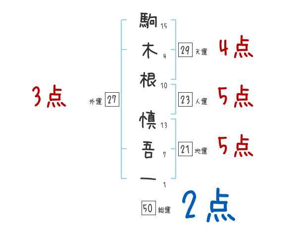 駒木根慎吾一さんの画数の鑑定結果