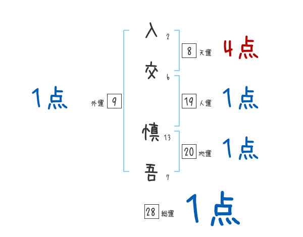 入交慎吾さんの画数の鑑定結果
