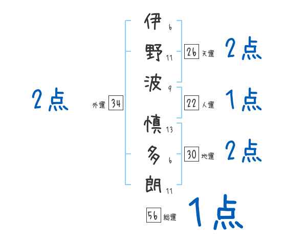 人運![]() | 伊野波慎多朗さんの人運は22画の1つ星!努力することが苦手ないっぽう手先が器用。芸術性にも優れる。 性格や才能などを表す2番目に重要な運勢です。人間関係や協調性、社会的な成功に影響します。主に20歳から50歳ぐらいまでの中年期の運勢を表します。 |