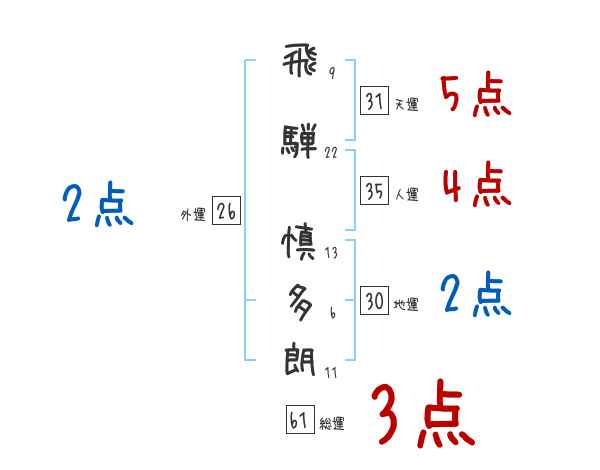 飛騨慎多朗さんの画数の鑑定結果