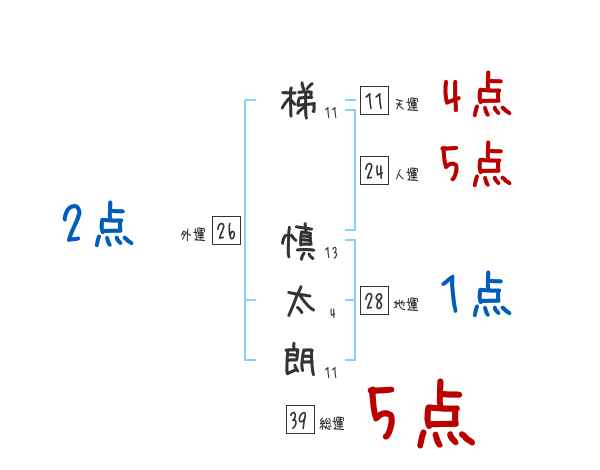 梯慎太朗さんの画数の鑑定結果