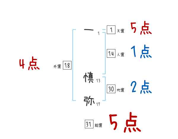 天運![]() | 一慎弥さんの天運は1画の5つ星!行動力、指導力があり出世し繁栄する。幸運に恵まれる。 家系が持つ宿命的な運勢を表します。祖先から受け継いだ苗字ですので自分の力が及びません。家柄を象徴します。 |