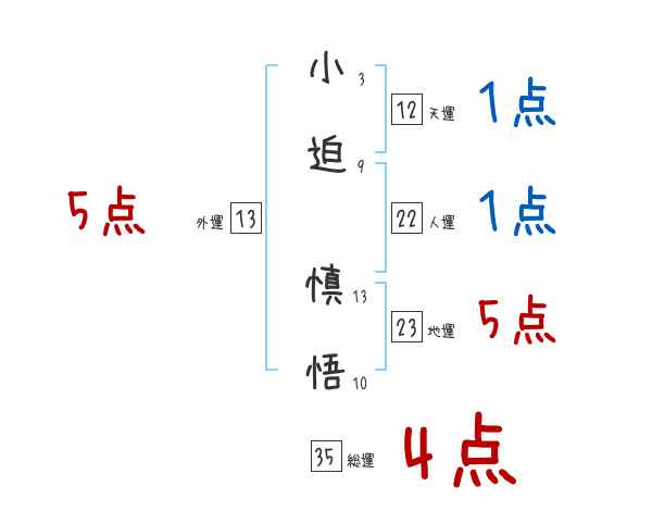 小迫慎悟さんの画数の鑑定結果