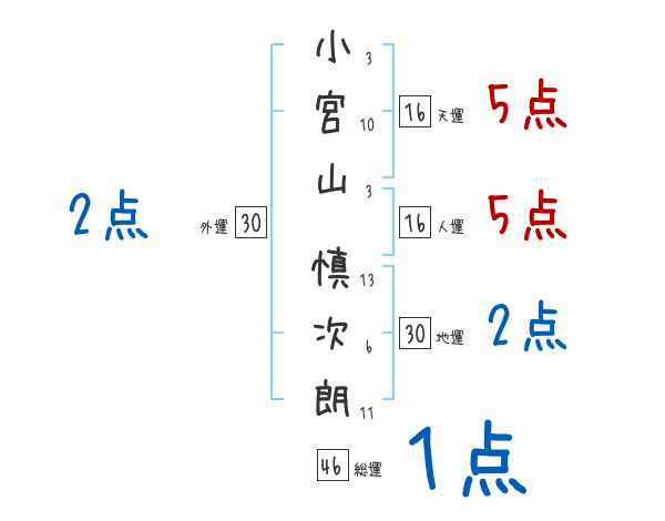 小宮山慎次朗さんの画数の鑑定結果