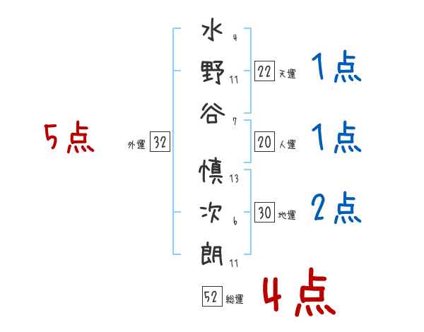 水野谷慎次朗さんの画数の鑑定結果