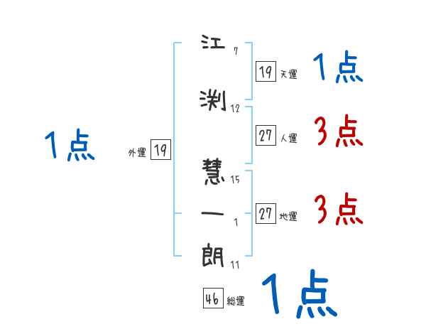 外運![]() | 江渕慧一朗さんの外運は19画の1つ星!優れた才能を持ちますが、協調性が足りないことも。周りの人と協力する事を意識しましょう。 生活面を象徴する運勢です。外部から受ける影響力を表し、結婚運、家庭運や職場、環境への順応性を表します。 |