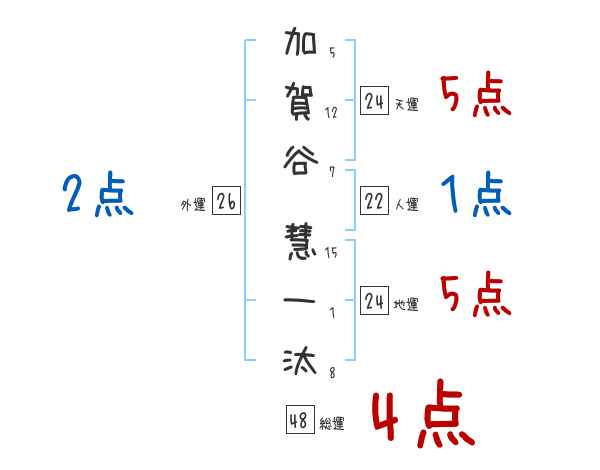 加賀谷慧一汰さんの画数の鑑定結果