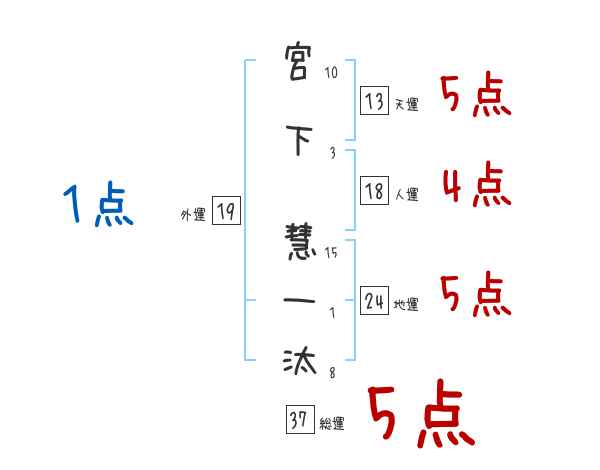 宮下慧一汰さんの画数の鑑定結果