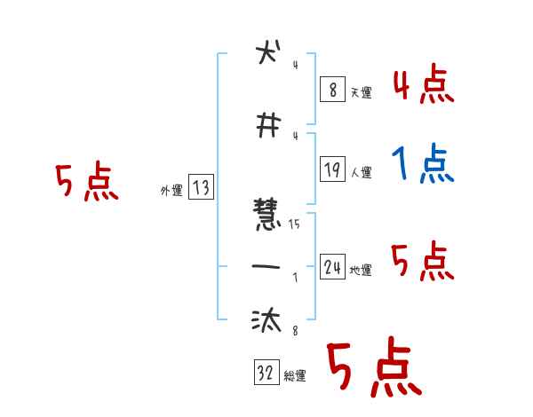 犬井慧一汰さんの画数の鑑定結果