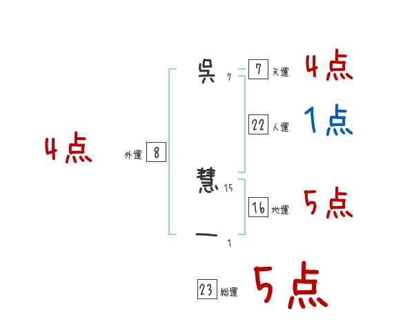 呉慧一さんの画数の鑑定結果
