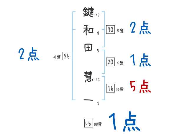鍵和田慧一さんの画数の鑑定結果