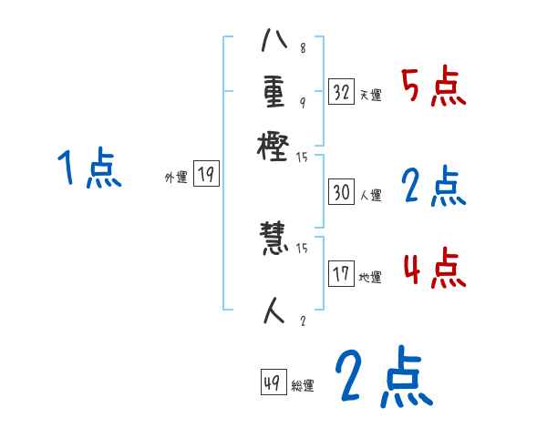 天運![]() | 八重樫慧人さんの天運は32画の5つ星!柔軟性があり成功する。チャンスが多く金運が良い。 家系が持つ宿命的な運勢を表します。祖先から受け継いだ苗字ですので自分の力が及びません。家柄を象徴します。 |