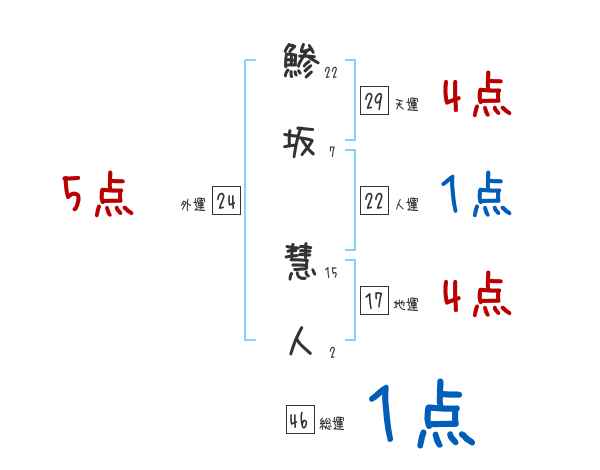 鯵坂慧人さんの画数の鑑定結果