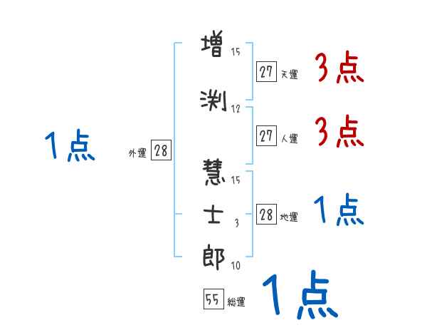 天運![]() | 増渕慧士郎さんの天運は27画の3つ星!頭脳明晰だが強情で摩擦が多い傾向。孤立に注意。 家系が持つ宿命的な運勢を表します。祖先から受け継いだ苗字ですので自分の力が及びません。家柄を象徴します。 |