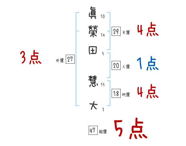 眞榮田慧大さんの画数の鑑定結果