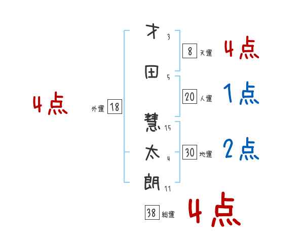 外運![]() | 才田慧太朗さんの外運は18画の4つ星!情熱的で剛気。忍耐力があり信頼される。 生活面を象徴する運勢です。外部から受ける影響力を表し、結婚運、家庭運や職場、環境への順応性を表します。 |