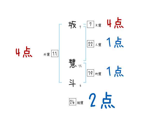 坂慧斗さんの画数の鑑定結果
