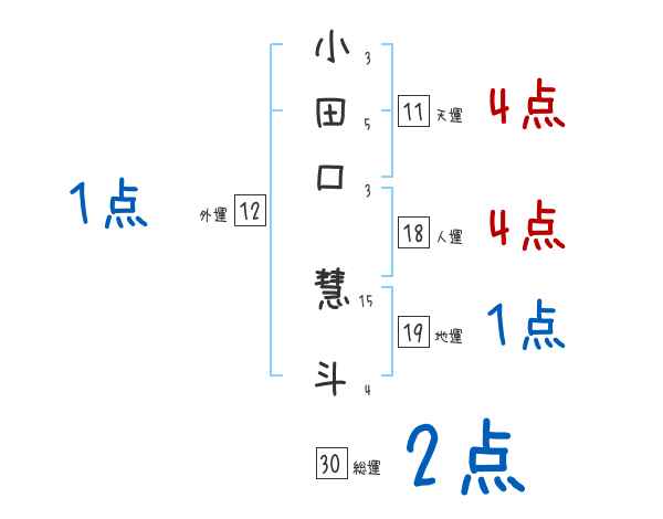 小田口慧斗さんの画数の鑑定結果