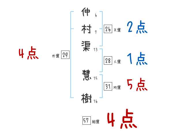 仲村渠慧樹さんの画数の鑑定結果