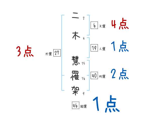 二木慧罹架さんの画数の鑑定結果