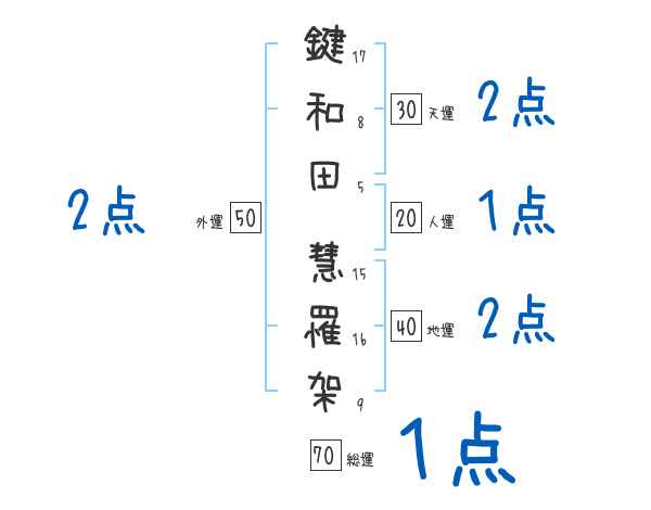 鍵和田慧罹架さんの画数の鑑定結果