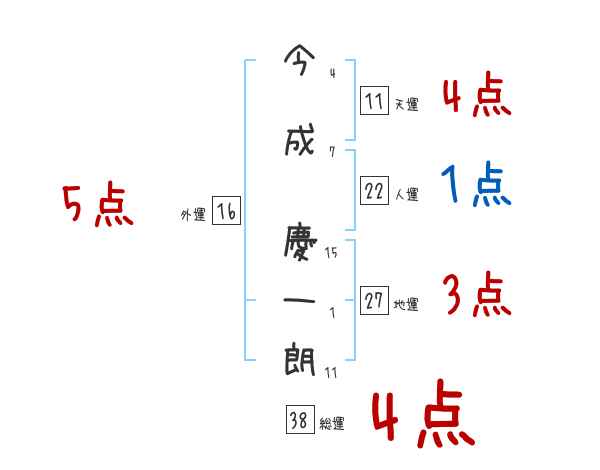 今成慶一朗さんの画数の鑑定結果