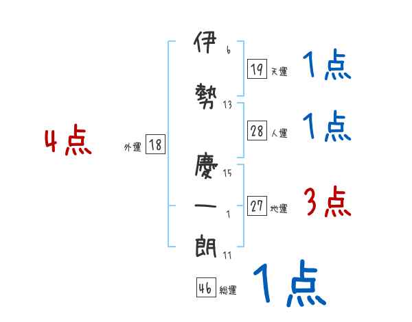 外運![]() | 伊勢慶一朗さんの外運は18画の4つ星!情熱的で剛気。忍耐力があり信頼される。 生活面を象徴する運勢です。外部から受ける影響力を表し、結婚運、家庭運や職場、環境への順応性を表します。 |
