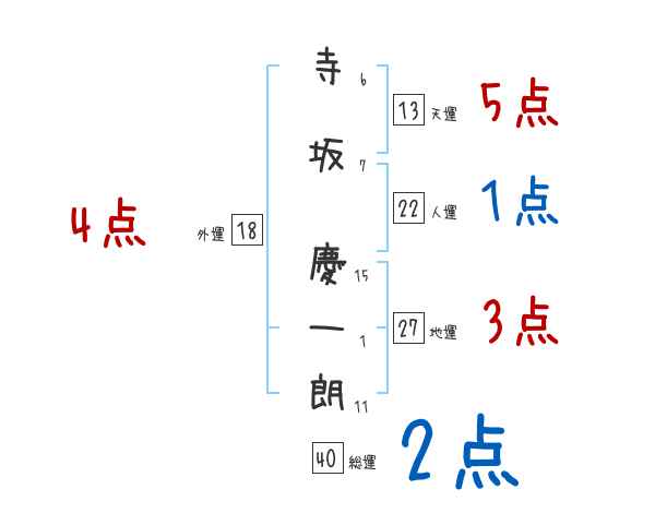寺坂慶一朗さんの画数の鑑定結果