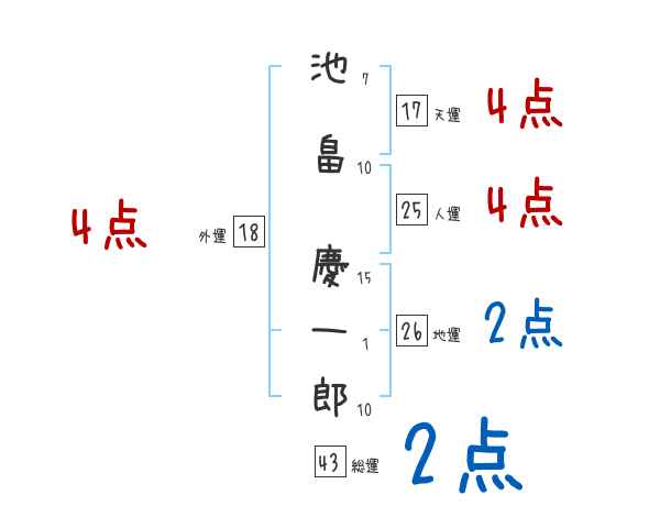 天運![]() | 池畠慶一郎さんの天運は17画の4つ星!積極的な行動力。地位を気づき財産を手に入れる。純粋な心と直感力。 家系が持つ宿命的な運勢を表します。祖先から受け継いだ苗字ですので自分の力が及びません。家柄を象徴します。 |