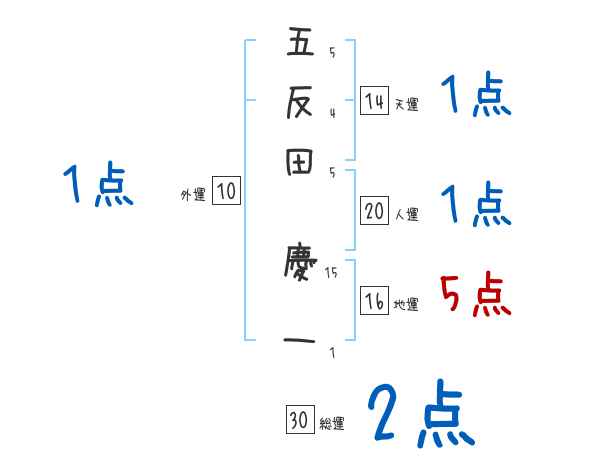 天運![]() | 五反田慶一さんの天運は14画の1つ星!人に対して優しいがストレスを溜め込みがち。人間関係のトラブルを避けるよう気をつけましょう。 家系が持つ宿命的な運勢を表します。祖先から受け継いだ苗字ですので自分の力が及びません。家柄を象徴します。 |