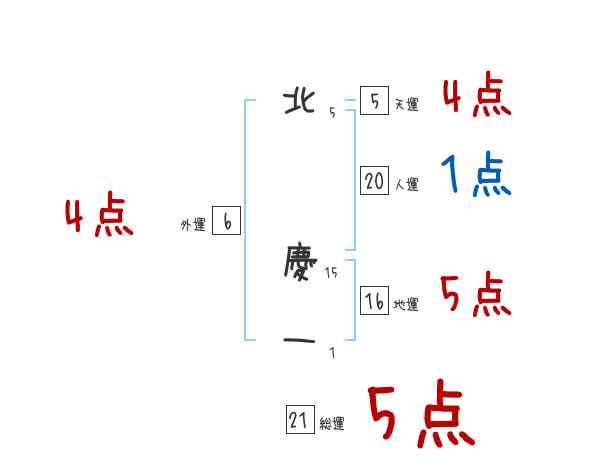 北慶一さんの画数の鑑定結果