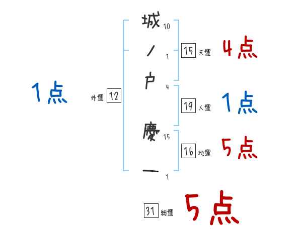 総運![]() | 城ノ戸慶一さんの総運は31画の5つ星!社交性があり判断力に優れる。順風満帆な人生で円満な生活。 あなたの人生を表す1番重要な運勢です。生涯を通じて影響する総合運となり、主に50歳以降の晩年期に影響を及ぼします。 |