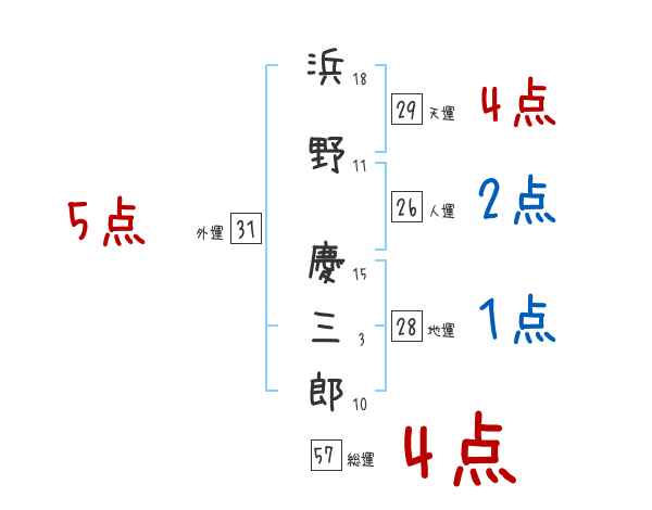 外運![]() | 浜野慶三郎さんの外運は31画の5つ星!社交性があり判断力に優れる。順風満帆な人生で円満な生活。 生活面を象徴する運勢です。外部から受ける影響力を表し、結婚運、家庭運や職場、環境への順応性を表します。 |