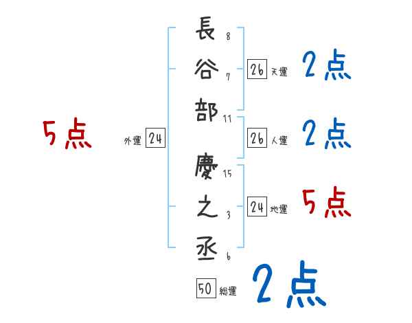 長谷部慶之丞さんの画数の鑑定結果