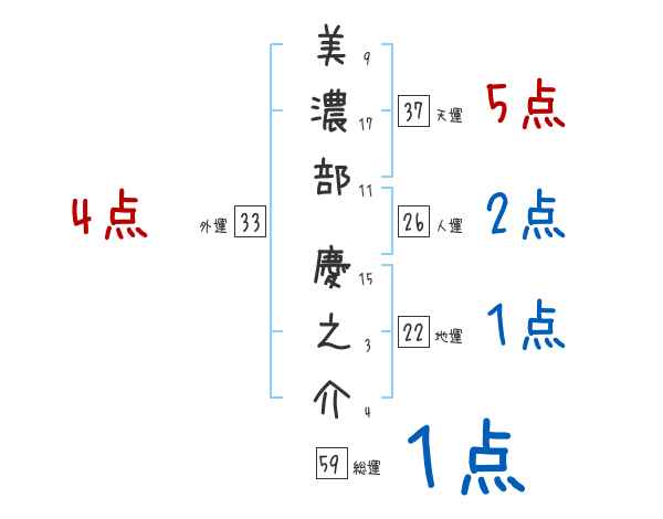 美濃部慶之介さんの画数の鑑定結果