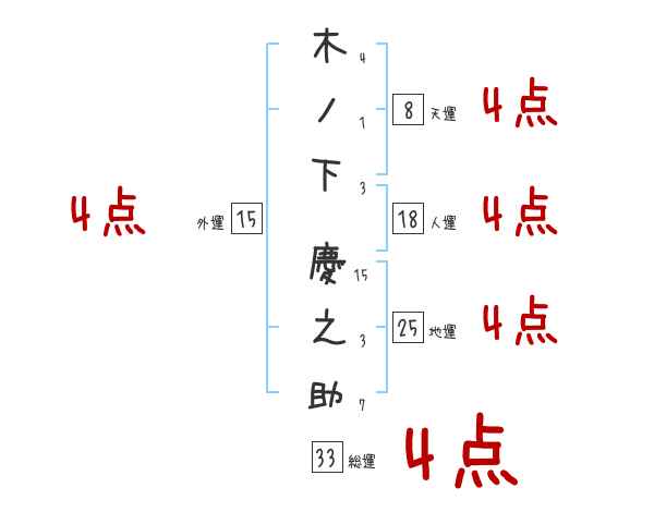 木ノ下慶之助さんの画数の鑑定結果