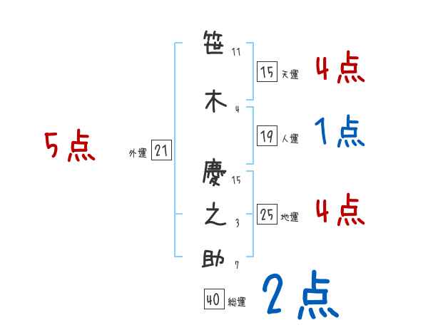 外運![]() | 笹木慶之助さんの外運は21画の5つ星!統率力がある。独立し成功する。名誉を手に入れる。 生活面を象徴する運勢です。外部から受ける影響力を表し、結婚運、家庭運や職場、環境への順応性を表します。 |