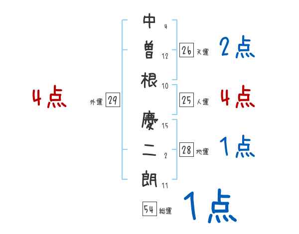 中曽根慶二朗さんの画数の鑑定結果