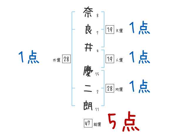 奈良井慶二朗さんの画数の鑑定結果