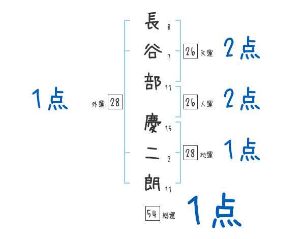 長谷部慶二朗さんの画数の鑑定結果
