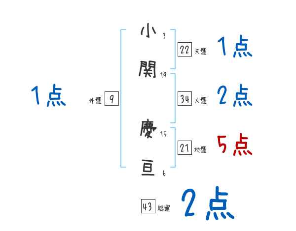 小関慶亘さんの画数の鑑定結果