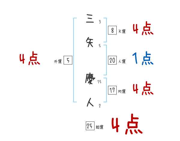 三矢慶人さんの画数の鑑定結果