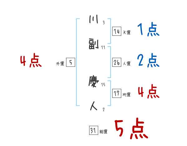 川副慶人さんの画数の鑑定結果