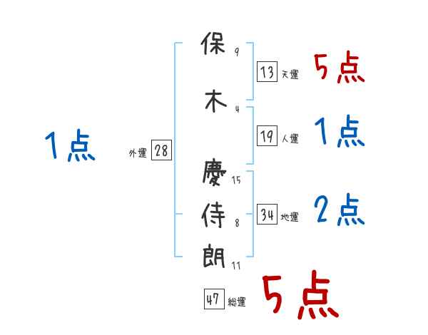 外運![]() | 保木慶侍朗さんの外運は28画の1つ星!家庭環境に注意。スポーツで活躍できる能力があるかも。 生活面を象徴する運勢です。外部から受ける影響力を表し、結婚運、家庭運や職場、環境への順応性を表します。 |