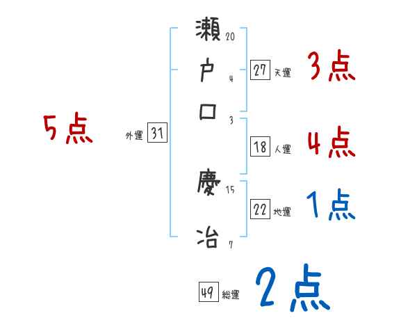 総運![]() | 瀬戸口慶冶さんの総運は49画の2つ星!不安定な性格で明暗がある人生。周りの人には支援されやすい。 あなたの人生を表す1番重要な運勢です。生涯を通じて影響する総合運となり、主に50歳以降の晩年期に影響を及ぼします。 |