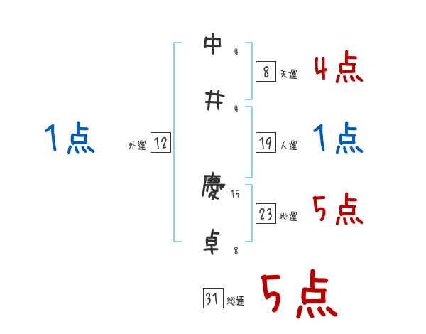 中井慶卓さんの画数の鑑定結果