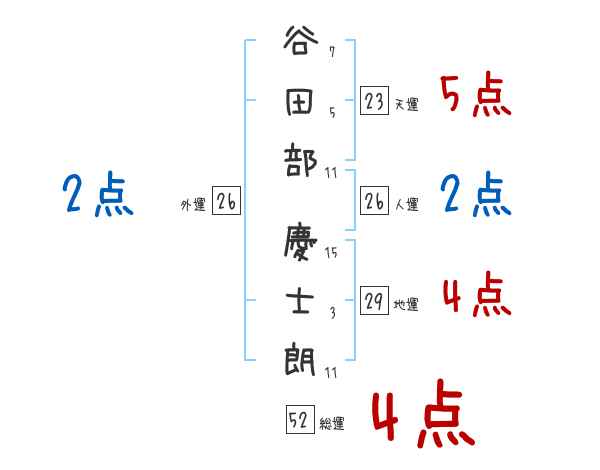 谷田部慶士朗さんの画数の鑑定結果