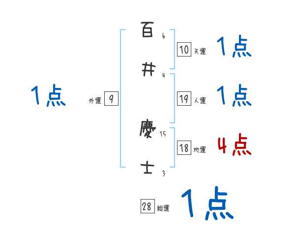 百井慶士さんの画数の鑑定結果