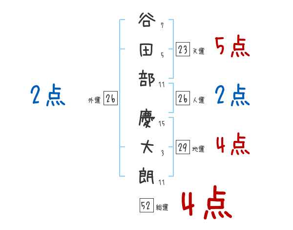 谷田部慶大朗さんの画数の鑑定結果